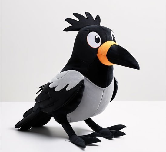 Zabawna pluszowa wrona w czarno-szarych barwach z pomarańczowym dziobem i dużymi oczami zachwyci każdego malucha. Jej wygląd jest jednocześnie komiczny i sympatyczny.